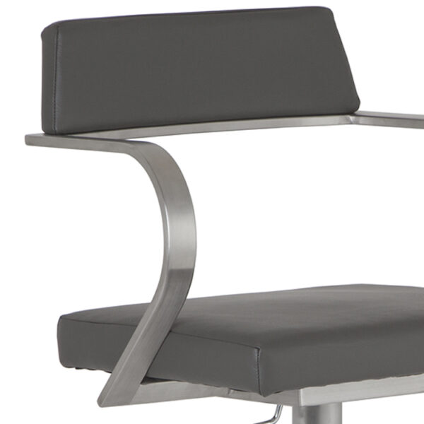 The Elva low-back stool, available in grey with a triangular brushed stainless steel base, is a contemporary, height-adjustable stool with a distinctive floating backrest design. Elva is the perfect companion for your bar table or bar-height counter.